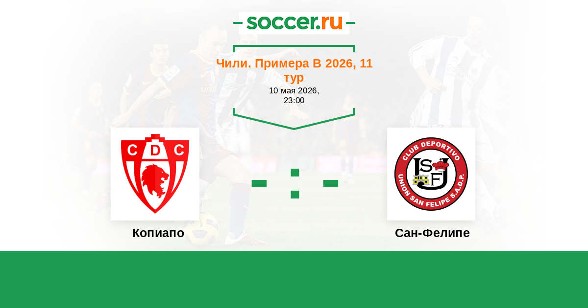 Чили. Примера В 14.08.2016 Копиапо Логотип футбольный клуб Копиапо 2:0 Логотип футбольный клуб Сан-Фелипе (Сан Фелипе) Сан-Фелипе
