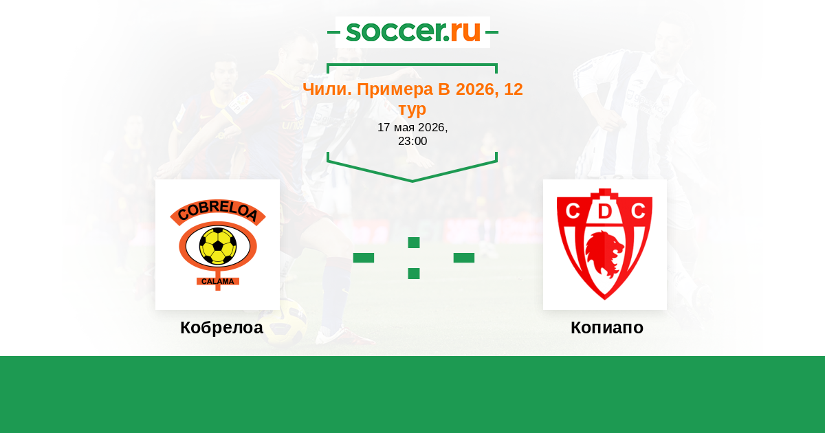 Чили. Примера В 19.02.2017 Кобрелоа Логотип футбольный клуб Кобрелоа (Калама) 0:0 Логотип футбольный клуб Копиапо Копиапо