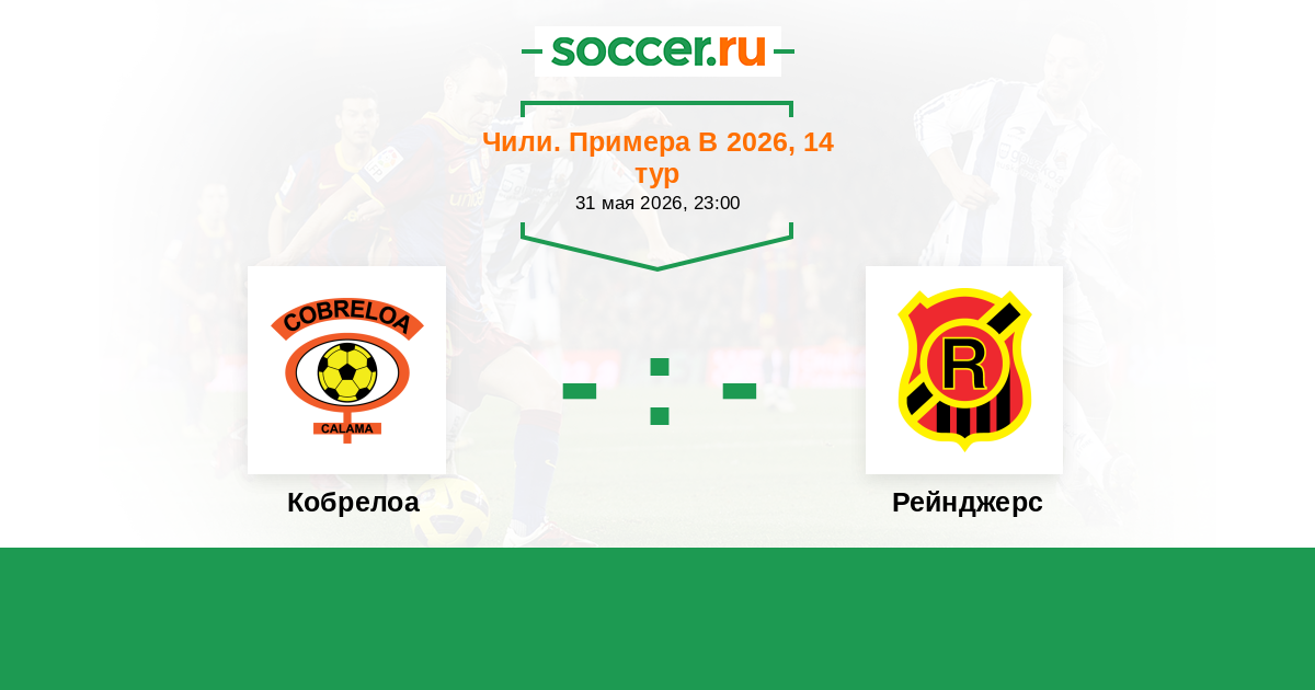 Чили. Примера В 04.03.2019 Кобрелоа Логотип футбольный клуб Кобрелоа (Калама) 2:2 Логотип футбольный клуб Рейнджерс (Талька) Рейнджерс