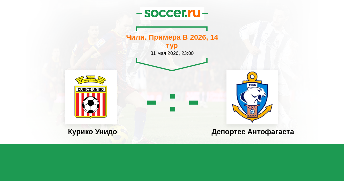 Чили. Примера дивизион 16.09.2022 Депортес Антофагаста Логотип футбольный клуб Депортес Антофагаста 0:0 Логотип футбольный клуб Курико Унидо Курико Унидо