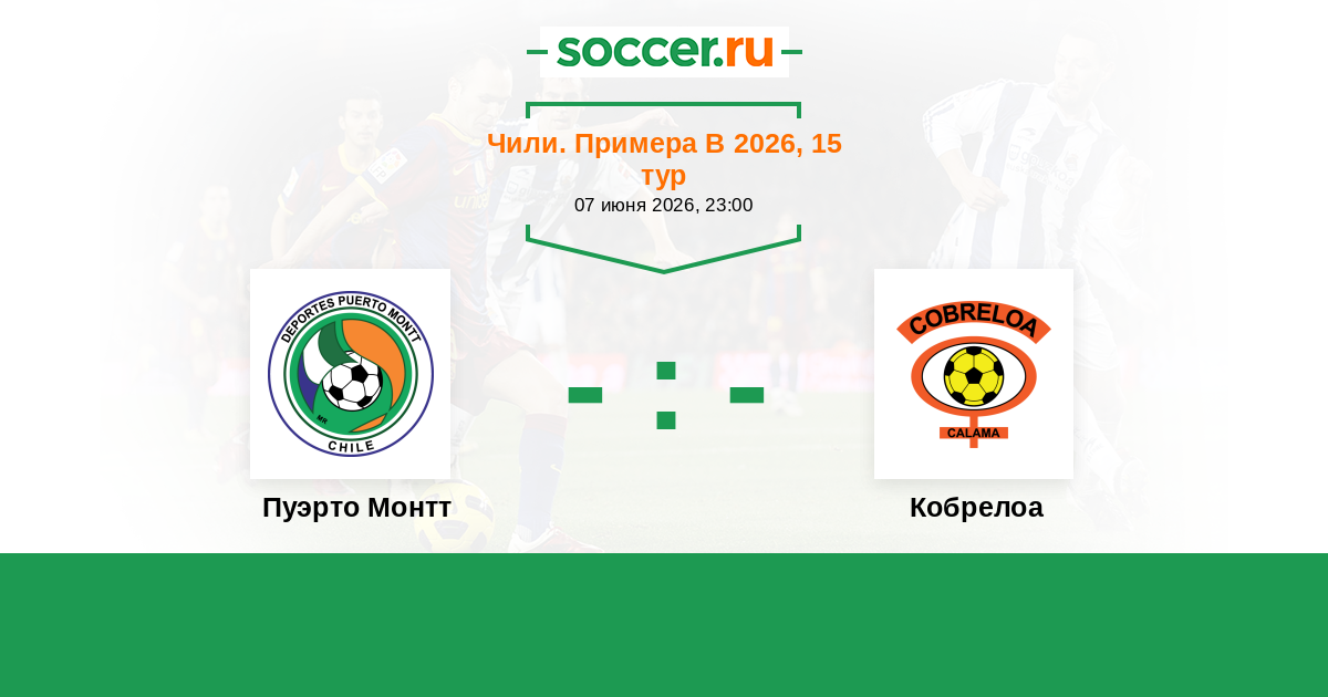 Чили. Примера В 23.07.2023 Кобрелоа Логотип футбольный клуб Кобрелоа (Калама) 1:0 Логотип футбольный клуб Пуэрто Монтт Пуэрто Монтт