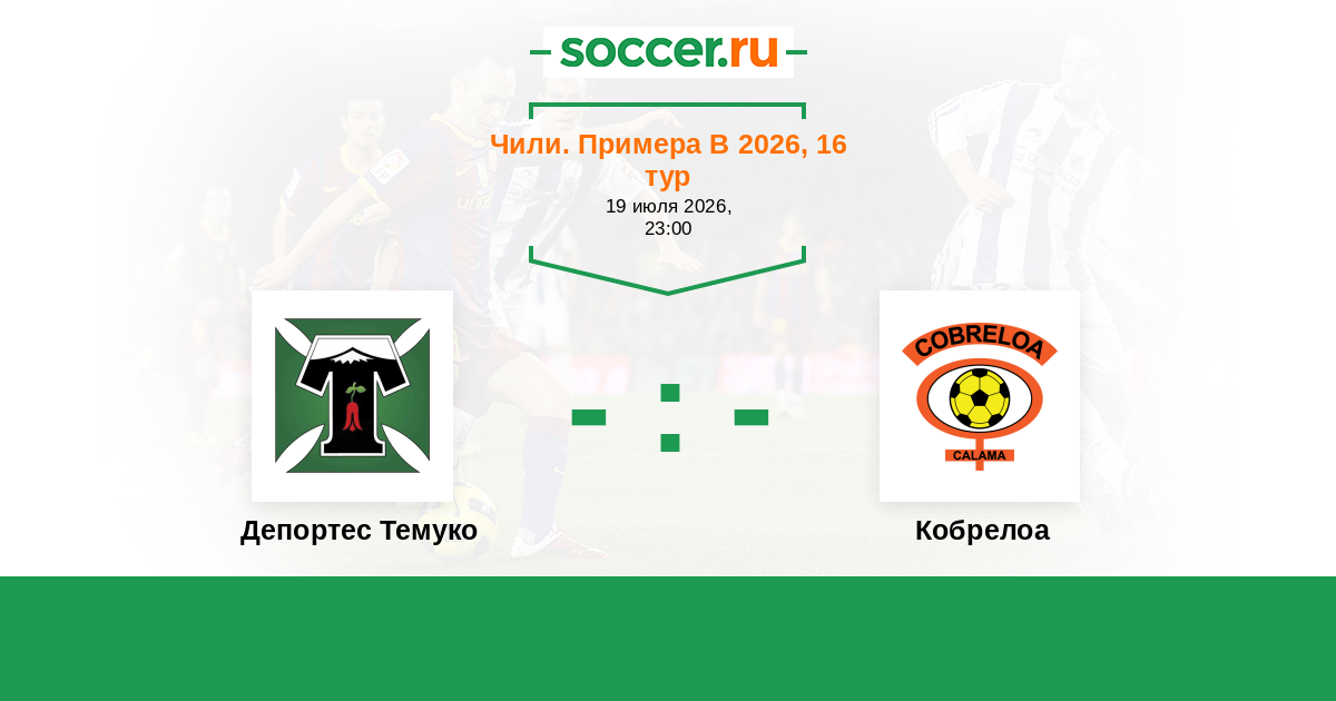 Чили. Примера В 13.01.2020 Кобрелоа Логотип футбольный клуб Кобрелоа (Калама) 0:2 Логотип футбольный клуб Депортес Темуко Депортес Темуко