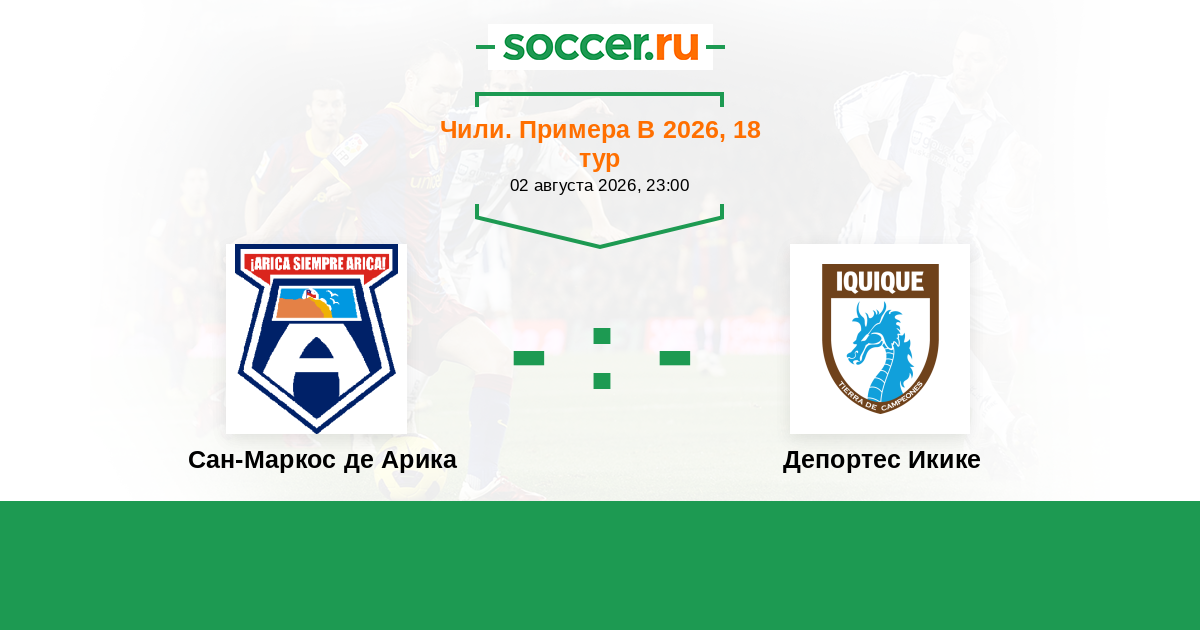 Чили. Примера В 02.09.2021 Сан-Маркос де Арика Логотип футбольный клуб Сан-Маркос де Арика 4:2 Логотип футбольный клуб Депортес Икике Депортес Икике