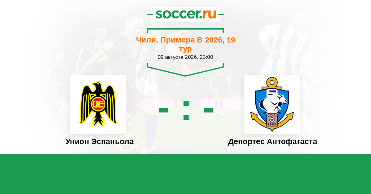 Чили. Примера дивизион 19.02.2018 Унион Эспаньола Логотип футбольный клуб Унион Эспаньола (Сантьяго) 1:1 Логотип футбольный клуб Депортес Антофагаста Депортес Антофагаста