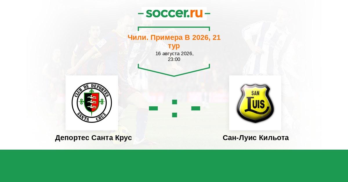 Чили. Примера В 11.07.2021 Депортес Санта Крус Логотип футбольный клуб Депортес Санта Крус (Санта-Крус) 2:0 Логотип футбольный клуб Сан-Луис Кильота Сан-Луис Кильота