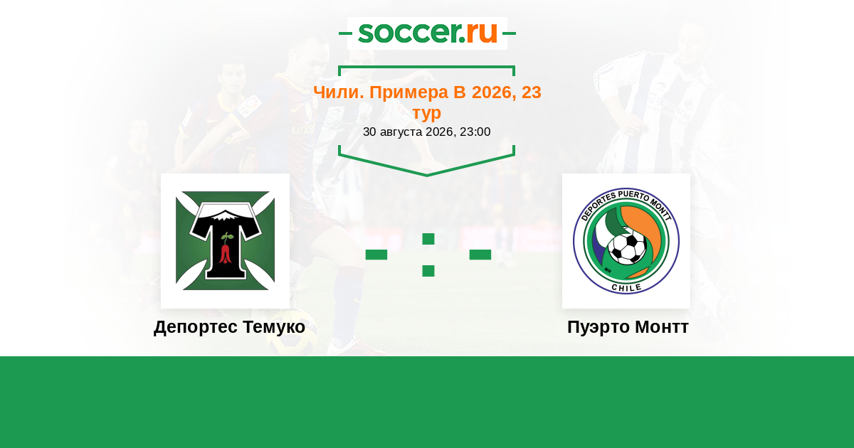 Чили. Примера В 23.03.2022 Пуэрто Монтт Логотип футбольный клуб Пуэрто Монтт 3:0 Логотип футбольный клуб Депортес Темуко Депортес Темуко