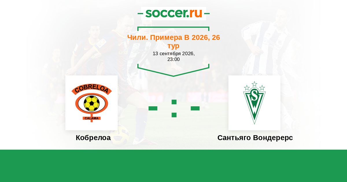 Чили. Примера В 26.10.2025 Кобрелоа Логотип футбольный клуб Кобрелоа (Калама) 2:0 Логотип футбольный клуб Сантьяго Вондерерс Сантьяго Вондерерс