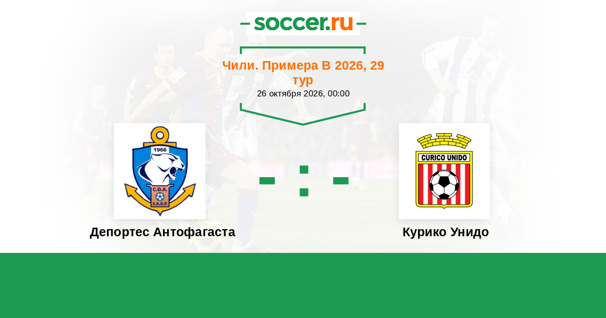 Чили. Примера дивизион 29.09.2017 Курико Унидо Логотип футбольный клуб Курико Унидо 0:1 Логотип футбольный клуб Депортес Антофагаста Депортес Антофагаста