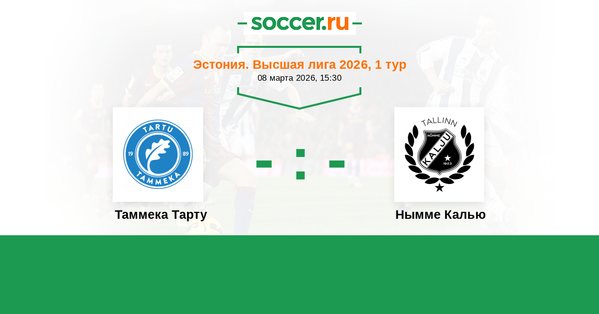 Эстония. Высшая лига 16.03.2025 Нымме Калью Логотип футбольный клуб Нымме Калью (Таллин) 2:2 Логотип футбольный клуб Таммека Тарту Таммека Тарту