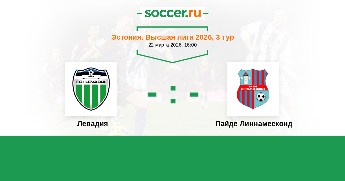 Эстония. Высшая лига 10.04.2022 Пайде Линнамесконд Логотип футбольный клуб Пайде Линнамесконд 0:1 Логотип футбольный клуб Левадия (Таллин) Левадия