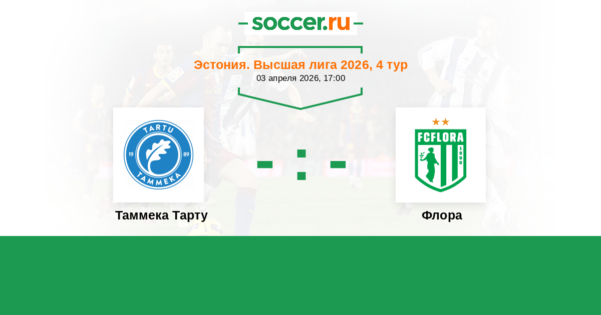 Эстония. Высшая лига 20.05.2020 Флора Логотип футбольный клуб Флора (Таллин) 0:0 Логотип футбольный клуб Таммека Тарту Таммека Тарту