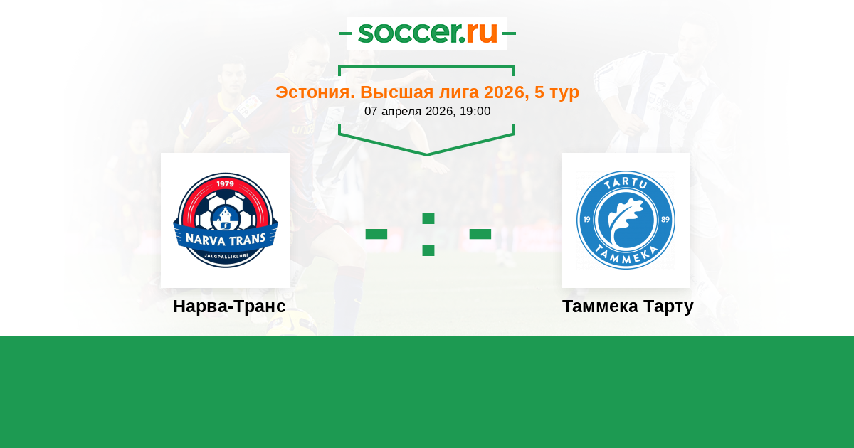 Эстония. Высшая лига 05.05.2021 Нарва-Транс Логотип футбольный клуб Нарва-Транс 2:1 Логотип футбольный клуб Таммека Тарту Таммека Тарту