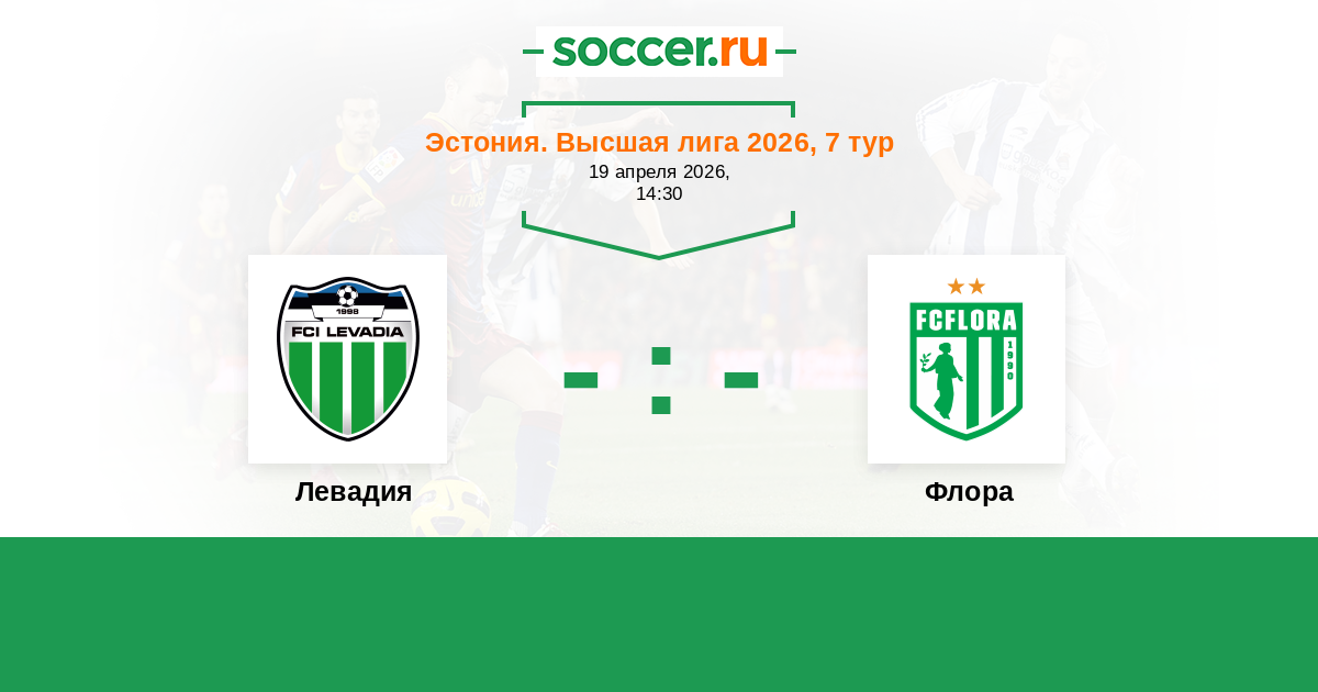 Эстония. Высшая лига 05.04.2014 Левадия Логотип футбольный клуб Левадия (Таллин) 1:1 Логотип футбольный клуб Флора (Таллин) Флора