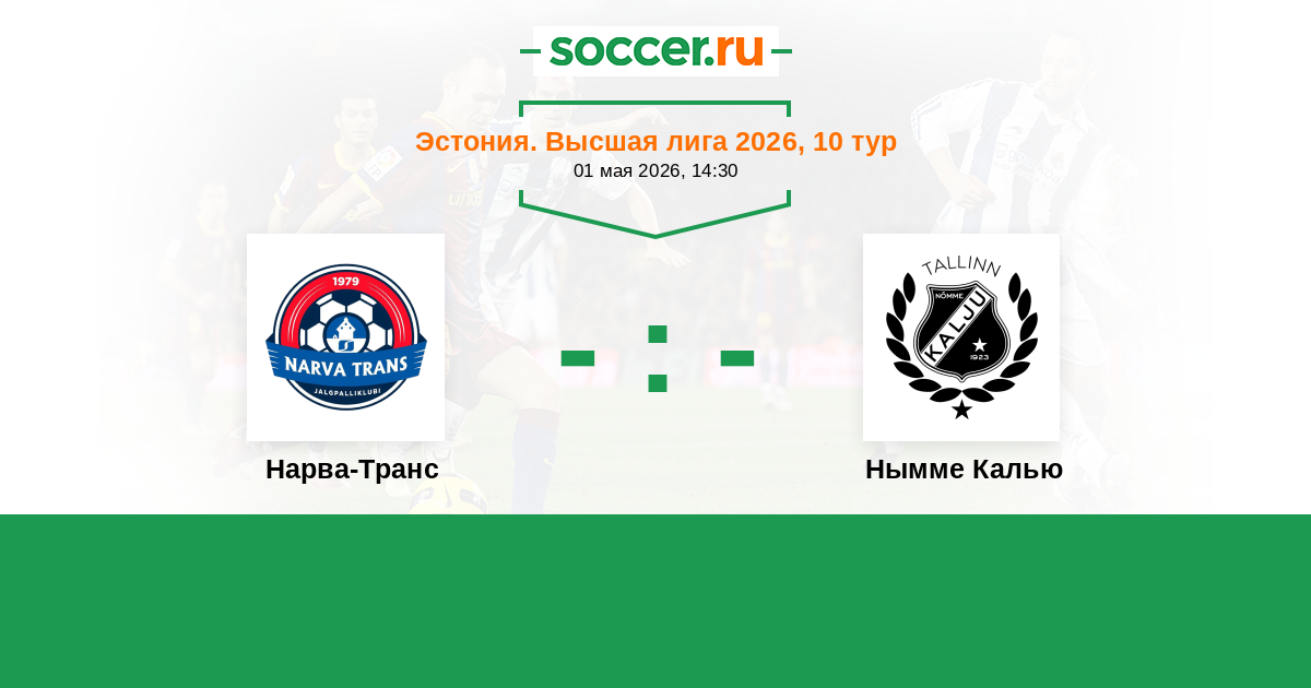 Эстония. Высшая лига 05.07.2019 Нарва-Транс Логотип футбольный клуб Нарва-Транс 1:1 Логотип футбольный клуб Нымме Калью (Таллин) Нымме Калью