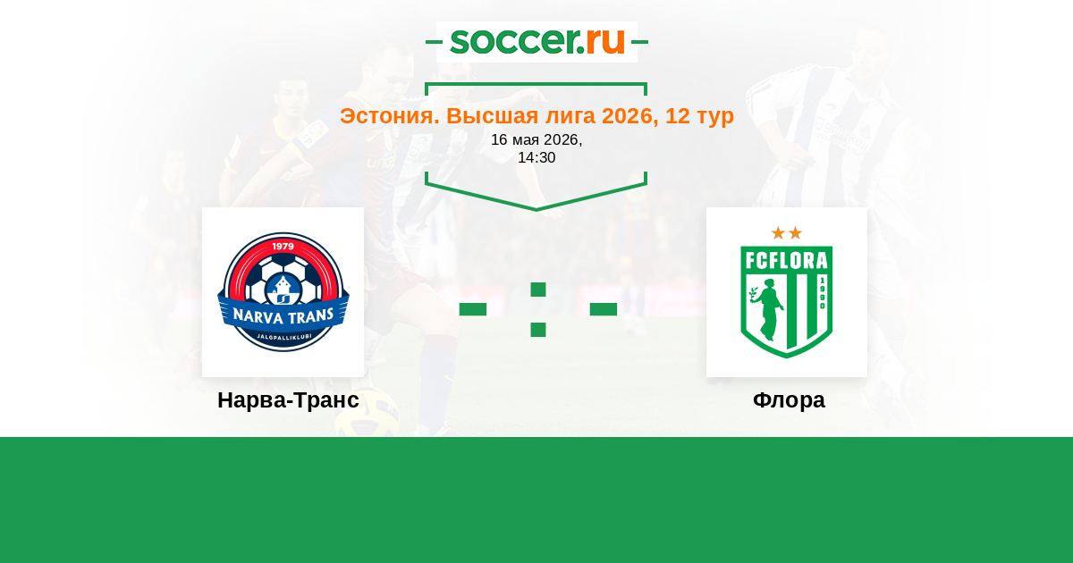 Эстония. Высшая лига 25.05.2022 Нарва-Транс Логотип футбольный клуб Нарва-Транс 0:3 Логотип футбольный клуб Флора (Таллин) Флора