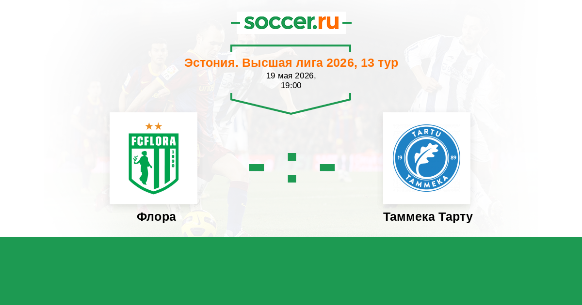 Эстония. Высшая лига 20.05.2020 Флора Логотип футбольный клуб Флора (Таллин) 0:0 Логотип футбольный клуб Таммека Тарту Таммека Тарту