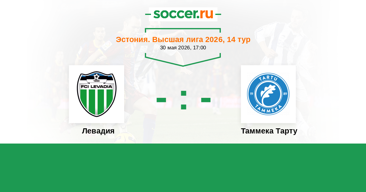 Эстония. Высшая лига 10.06.2014 Таммека Тарту Логотип футбольный клуб Таммека Тарту 0:7 Логотип футбольный клуб Левадия (Таллин) Левадия