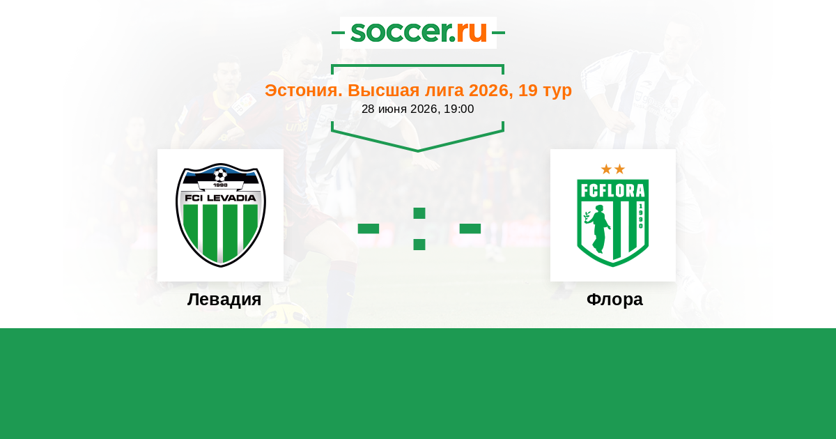Эстония. Высшая лига 17.06.2020 Флора Логотип футбольный клуб Флора (Таллин) 4:0 Логотип футбольный клуб Левадия (Таллин) Левадия