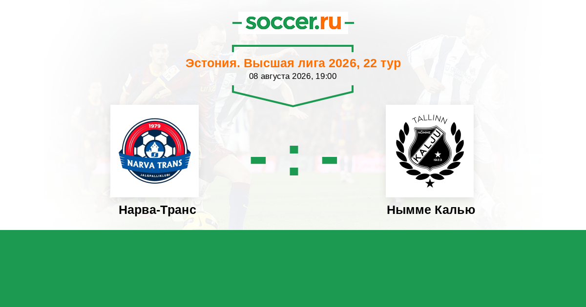 Эстония. Высшая лига 05.07.2019 Нарва-Транс Логотип футбольный клуб Нарва-Транс 1:1 Логотип футбольный клуб Нымме Калью (Таллин) Нымме Калью