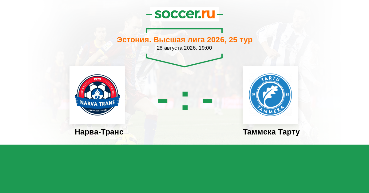 Эстония. Высшая лига 09.08.2025 Нарва-Транс Логотип футбольный клуб Нарва-Транс 4:1 Логотип футбольный клуб Таммека Тарту Таммека Тарту