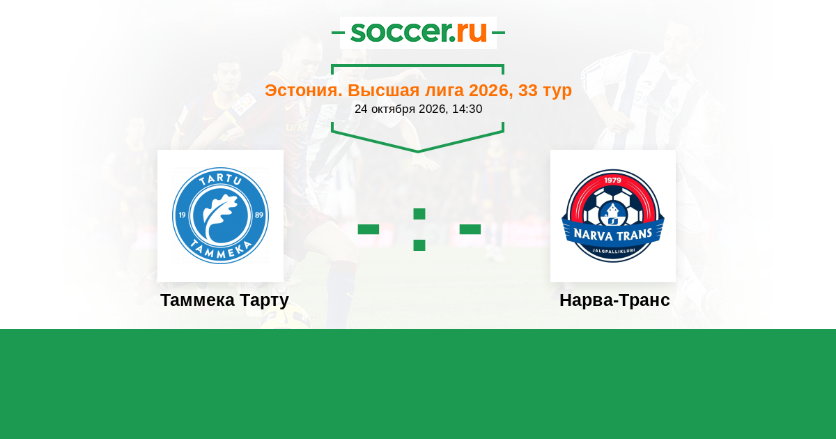 Эстония. Высшая лига 31.08.2024 Нарва-Транс Логотип футбольный клуб Нарва-Транс 0:1 Логотип футбольный клуб Таммека Тарту Таммека Тарту