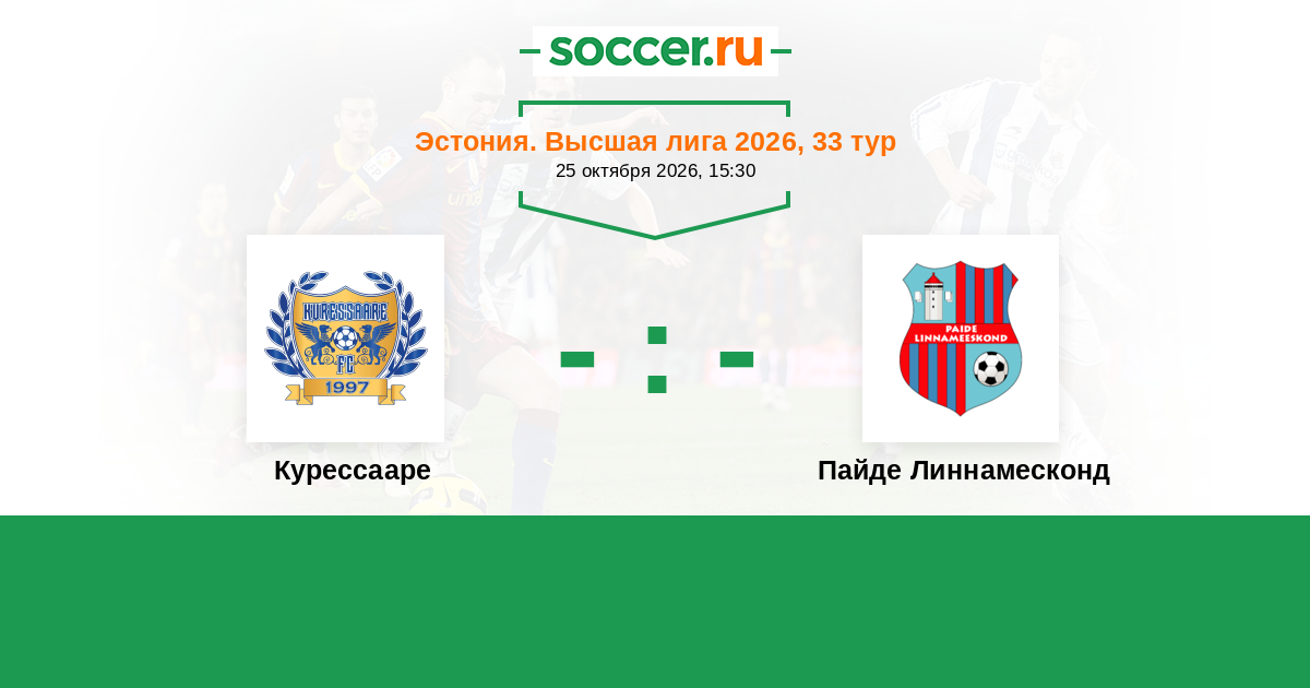 Эстония. Высшая лига 22.10.2023 Пайде Линнамесконд Логотип футбольный клуб Пайде Линнамесконд 1:0 Логотип футбольный клуб Курессааре Курессааре