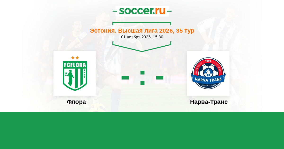 Эстония. Высшая лига 31.10.2021 Нарва-Транс Логотип футбольный клуб Нарва-Транс 0:2 Логотип футбольный клуб Флора (Таллин) Флора
