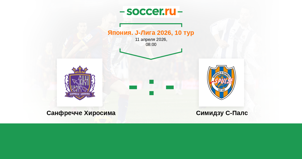 Япония. J-Лига 1 10.08.2025 Санфречче Хиросима Логотип футбольный клуб Санфречче Хиросима 0:0 Логотип футбольный клуб Симидзу С-Палс Симидзу С-Палс