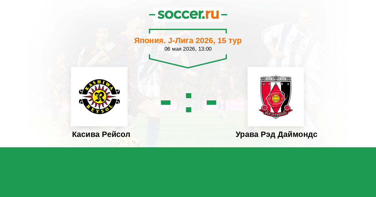 Япония. J-Лига 1 08.05.2022 Касива Рейсол Логотип футбольный клуб Касива Рейсол 0:0 Логотип футбольный клуб Урава Рэд Даймондс (Сайтама) Урава Рэд Даймондс