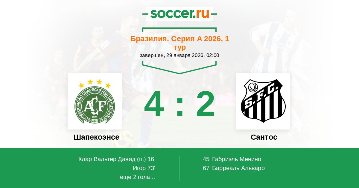 Протокол матча Шапекоэнсе против Сантос