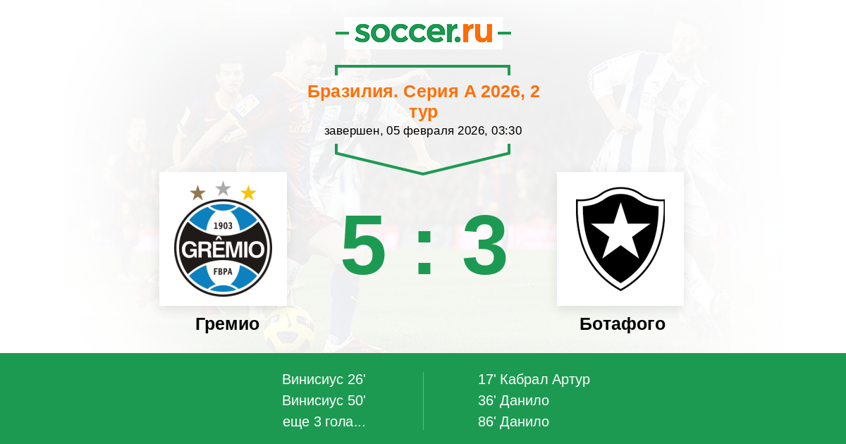 Протокол матча Гремио против Ботафого