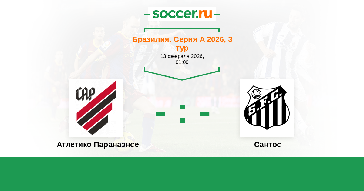 Бразилия. Серия А 17.08.2020 Сантос Логотип футбольный клуб Сантос (Сан-Паулу) 3:1 Логотип футбольный клуб Атлетико Паранаэнсе (Куритиба) Атлетико Паранаэнсе