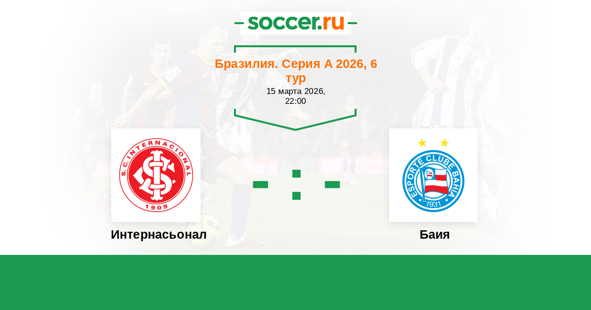 Бразилия. Серия А 15.04.2018 Интернасьонал Логотип футбольный клуб Интернасьонал (Порту-Алегри) 2:0 Логотип футбольный клуб Баия (Салвадор) Баия