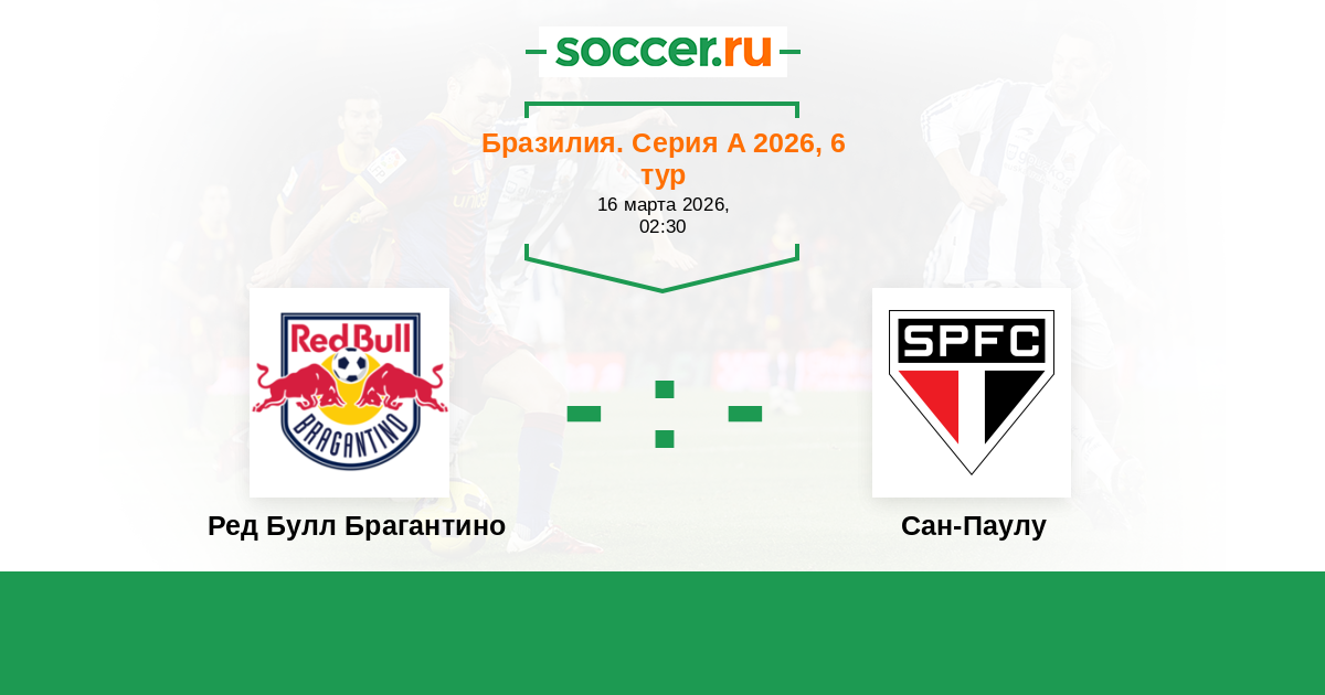 Бразилия. Серия А 17.07.2025 Ред Булл Брагантино Логотип футбольный клуб Ред Булл Брагантино (Браганса-Паулиста) 2:2 Логотип футбольный клуб Сан-Паулу Сан-Паулу