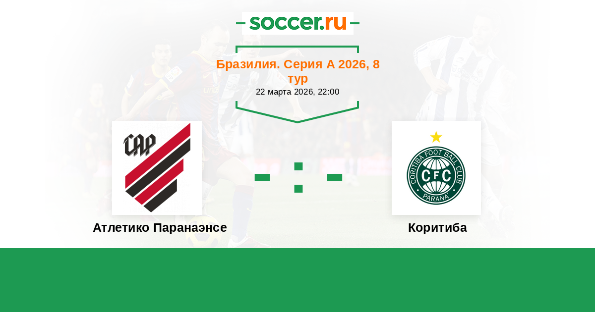 Бразилия. Паранаэнсе 1 27.03.2022 Коритиба Логотип футбольный клуб Коритиба 1:1 Логотип футбольный клуб Атлетико Паранаэнсе (Куритиба) Атлетико Паранаэнсе