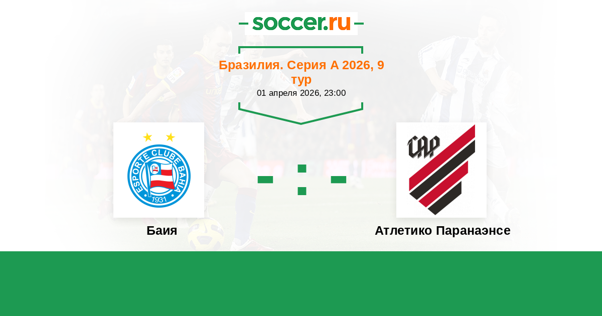 Бразилия. Серия А 29.04.2018 Баия Логотип футбольный клуб Баия (Салвадор) 0:0 Логотип футбольный клуб Атлетико Паранаэнсе (Куритиба) Атлетико Паранаэнсе