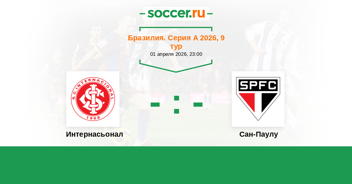 Бразилия. Серия А 07.05.2023 Сан-Паулу Логотип футбольный клуб Сан-Паулу 2:0 Логотип футбольный клуб Интернасьонал (Порту-Алегри) Интернасьонал