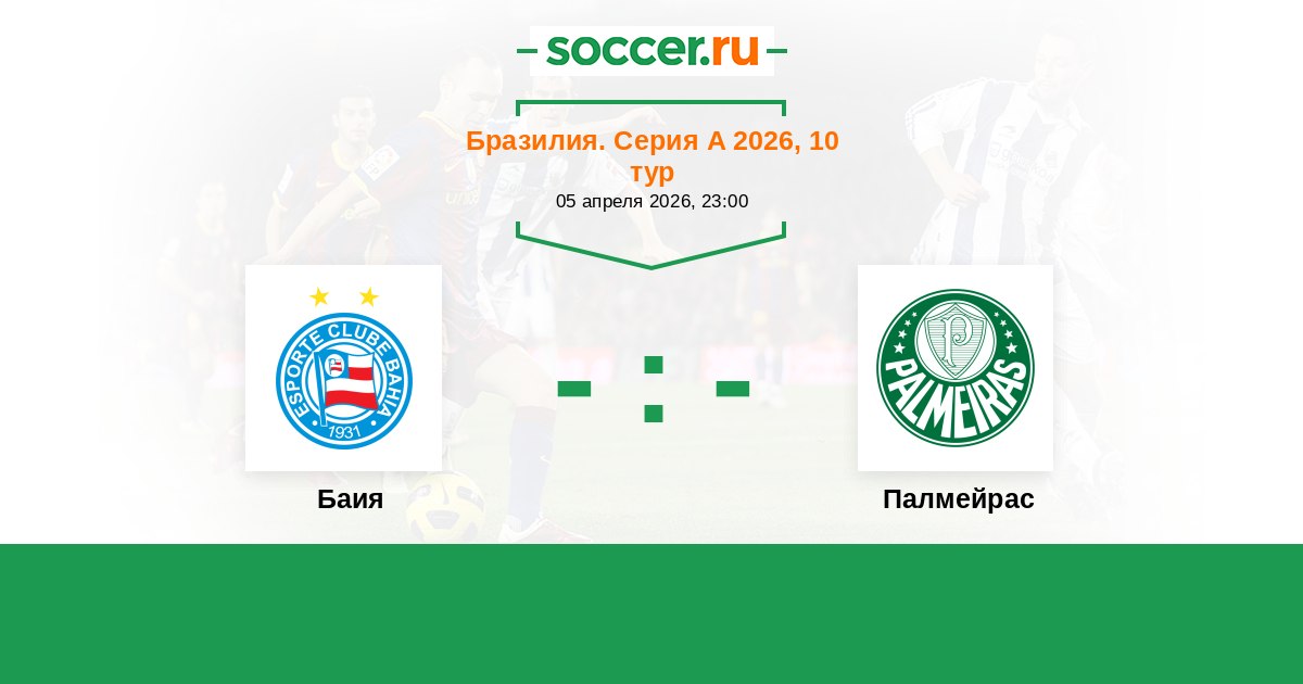 Бразилия. Серия А 13.10.2021 Баия Логотип футбольный клуб Баия (Салвадор) 0:0 Логотип футбольный клуб Палмейрас (Сан-Паулу) Палмейрас