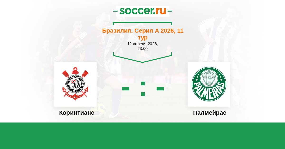 Бразилия. Серия А 11.09.2020 Коринтианс Логотип футбольный клуб Коринтианс (Сан-Паулу) 0:2 Логотип футбольный клуб Палмейрас (Сан-Паулу) Палмейрас