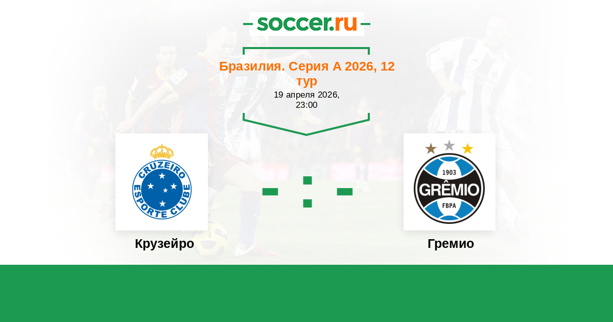 Бразилия. Серия А 23.04.2023 Крузейро Логотип футбольный клуб Крузейро (Белу-Оризонти) 1:0 Логотип футбольный клуб Гремио (Порту-Алегри) Гремио