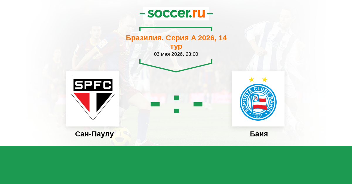 Бразилия. Серия А 26.10.2025 Сан-Паулу Логотип футбольный клуб Сан-Паулу 2:0 Логотип футбольный клуб Баия (Салвадор) Баия