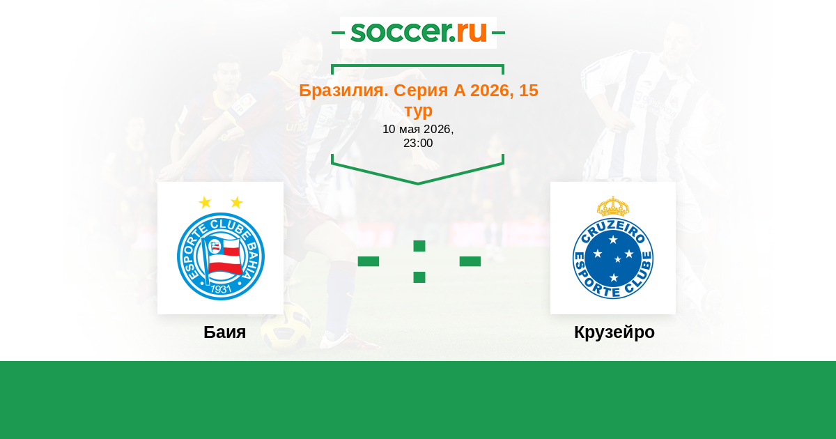 Бразилия. Серия А 19.10.2024 Крузейро Логотип футбольный клуб Крузейро (Белу-Оризонти) 1:1 Логотип футбольный клуб Баия (Салвадор) Баия