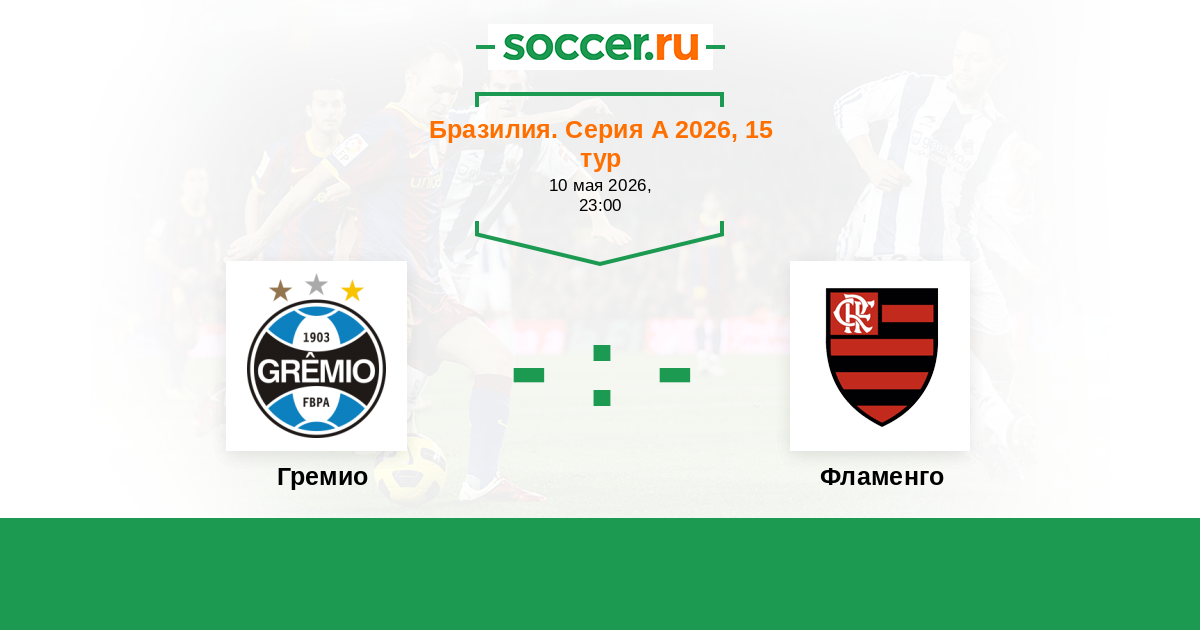 Бразилия. Серия А 29.05.2010 Фламенго Логотип футбольный клуб Фламенго (Рио-де-Жанейро) 1:1 Логотип футбольный клуб Гремио (Порту-Алегри) Гремио