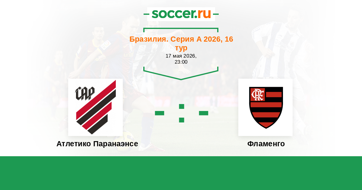Бразилия. Серия А 26.05.2019 Фламенго Логотип футбольный клуб Фламенго (Рио-де-Жанейро) 3:2 Логотип футбольный клуб Атлетико Паранаэнсе (Куритиба) Атлетико Паранаэнсе