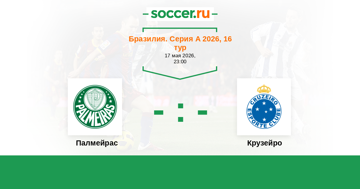 Бразилия. Серия А 27.10.2025 Палмейрас Логотип футбольный клуб Палмейрас (Сан-Паулу) 0:0 Логотип футбольный клуб Крузейро (Белу-Оризонти) Крузейро