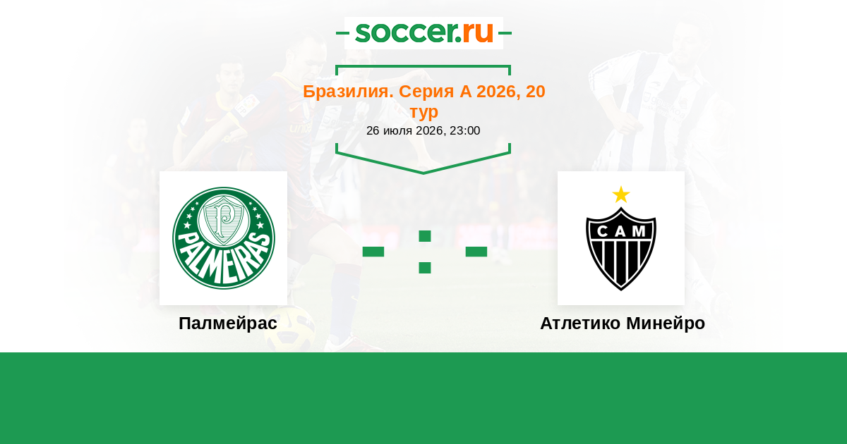 Бразилия. Серия А 22.07.2018 Палмейрас Логотип футбольный клуб Палмейрас (Сан-Паулу) 3:2 Логотип футбольный клуб Атлетико Минейро (Белу-Оризонти) Атлетико Минейро