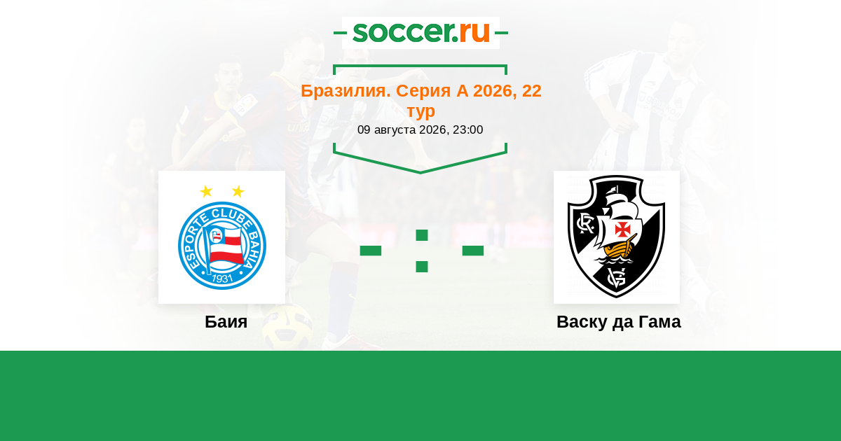 Бразилия. Серия А 25.09.2018 Васку да Гама Логотип футбольный клуб Васку да Гама (Рио-де-Жанейро) 2:1 Логотип футбольный клуб Баия (Салвадор) Баия