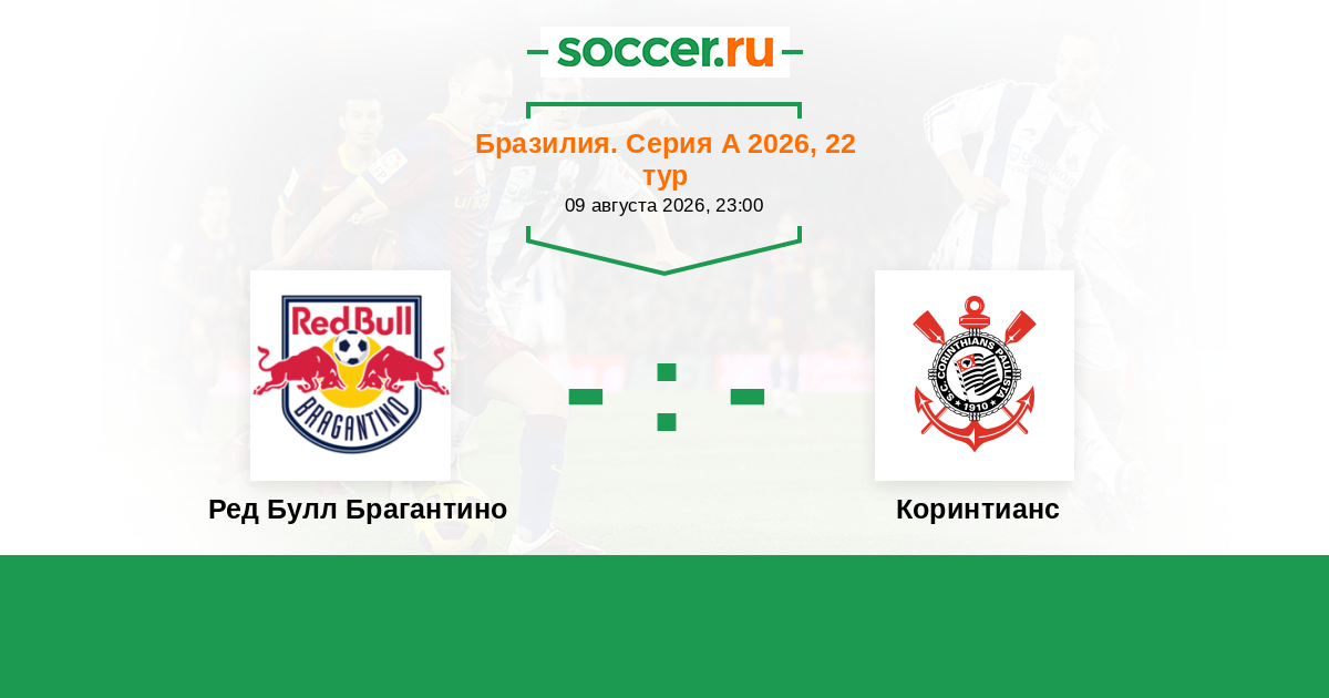 Бразилия. Серия А 03.10.2021 Ред Булл Брагантино Логотип футбольный клуб Ред Булл Брагантино (Браганса-Паулиста) 2:2 Логотип футбольный клуб Коринтианс (Сан-Паулу) Коринтианс
