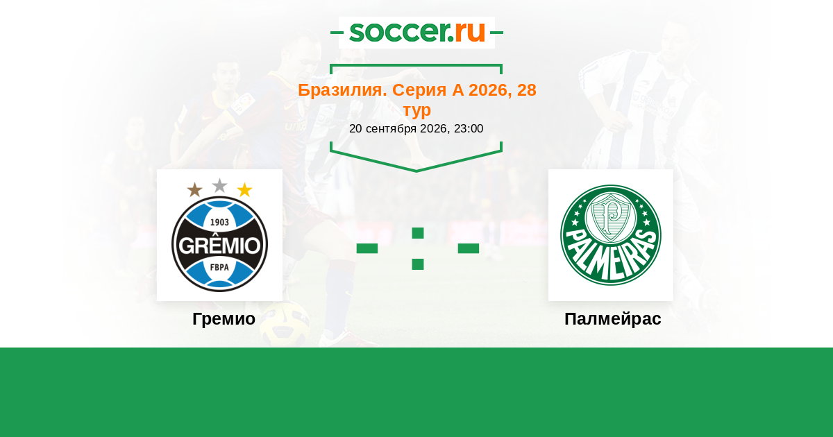 Бразилия. Серия А 20.09.2020 Гремио Логотип футбольный клуб Гремио (Порту-Алегри) 1:1 Логотип футбольный клуб Палмейрас (Сан-Паулу) Палмейрас
