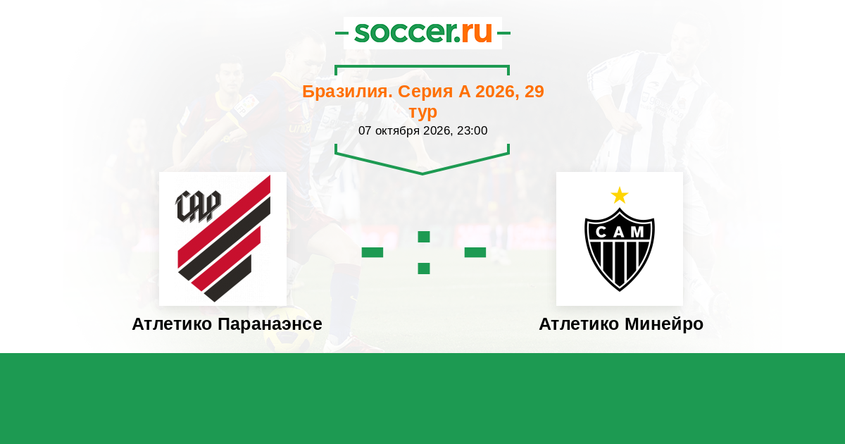 Бразилия. Серия А 19.11.2020 Атлетико Минейро Логотип футбольный клуб Атлетико Минейро (Белу-Оризонти) 0:2 Логотип футбольный клуб Атлетико Паранаэнсе (Куритиба) Атлетико Паранаэнсе
